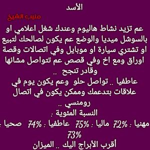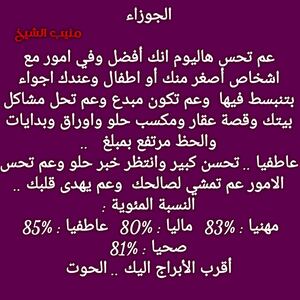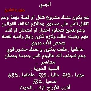 عم تحس حالك بفترة متقلبة وبدك اشخاص موثوقة وانتظر اخبار حلوة ومناسبات رح تخليك مبسوط وبنفس الوقت في فرص ارتباط قادمة الك واشخاص حقيقيين وكمان في تغيير بحياتك وافكارك ولازم تفتح ابواب جديدة وشوي شوي رح تلاقي شغل يلبي طموحاتك وكل عام وانت بخير ..