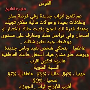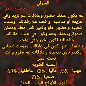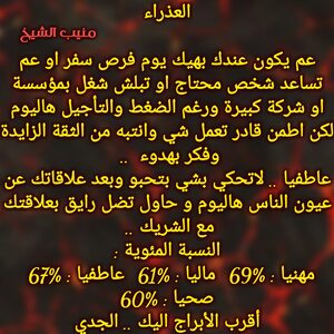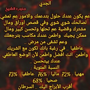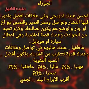 عم يكون قدامك خيارات بتفتح كتير ابواب بحياتك واهم شي انك مقبل على سفر مفاجئ وناس جدد وتغيير بحياتك وشكلك وفي قصة شراكة عم تخلص وعم تفكر بامور بتخص المال ومع الوقت في حلول كبيرة ناطرتك وقدرة انك ترتب حياتك بطريقة افضل وكل عام وانت بخير ..