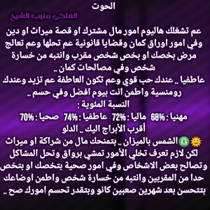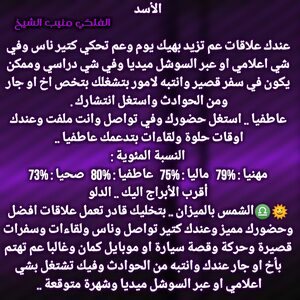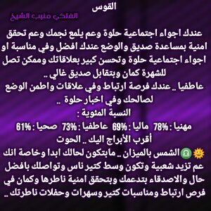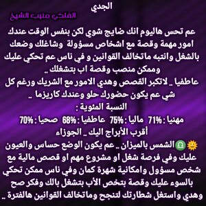 عندك قدرة انك تعمل شي مهم وترفع اسمك بين الكل الفترة القادمة وكمان عندك اجواء حلوة وفرص عم تزيد والسنوات الجاية الك رح تفتحلك ابواب حظ جديدة وقدرة على كسب محبة اشخاص وبنفس الوقت في فرص عم تزيد وعلاقاتك بافضل حالاتها وامكانية استقرار وارتباط وكل عام وانت بخير ..