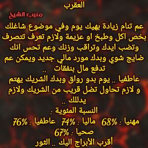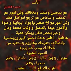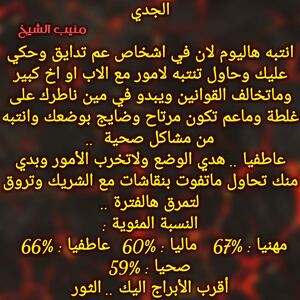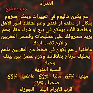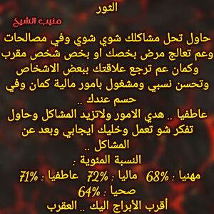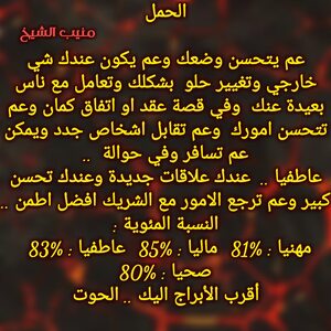 عم يكون عندك فترة حلوة بتدعمك مهنيا وفي فرص لتكون بشغل بابي طموحاتك وبنفس الوقت لازم تفكر بامور مالية قادمة وفرص ومكاسب وخاصة من شخص بعيد وفي مشاكل عاطفية بشراكاتك وفي اشخاص عم ترجع فجأة ولازم تنبه وماترجع لاشخاص مابتستاهل وكل عام وانت بخير ..