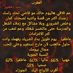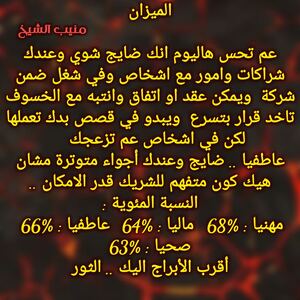 مولود اليوم 6 أكتوبر .. لديه قدرة على التعامل مع جميع انواع الناس ، مسالم ، لطيف ، يعرف قدر نفسه ، لايمكن أن يعطيك اكبر من قيمتك ، لديه شخصية محبوبة وقريبة من الجميع ، يحب أن يكون لديه علاقات حقيقية تستمر ، يساعد من حوله عندما يجد انهم يستحقون ذلك ، لديه قدرة على الاقناع وحل الخلافات ايضا ، .وفيه ايضا الكثير من الفضول الذي يحتاج منه لان يعرف كل شيء .