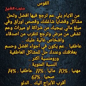 مرقت بتجارب صعبة وصار وقت الراحة والقادم بحياتك بيحملك كتير فرص بتعوض فيها ورح ترجع مكانتك وتكون افضل مهنيا وحتى عاطفيا رح تلفت انظار اشخاص وممكن تتم ارتباط مع شخص على مستوى وناطرك بالسنوات القادمة فرص سفر كبيرة وتغيير بحياتك وكل عام وانت بخير ..