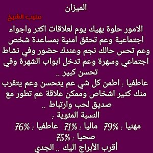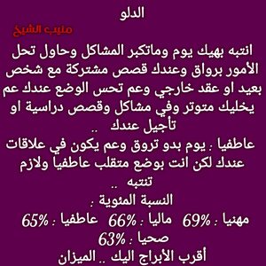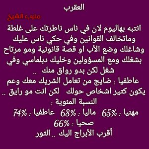 مولود اليوم 15 أكتوبر .. حساس ، طيب ، عنده ثقة عالية، يتصرف بأنه المسؤول عمن حوله ، مبدع في اعمال وامور كثيرة ، محترم ويمتلك حضور قوي ونجومية ايضا ، يحب الاختلاف والتميز ، لا يصاحب اي شخص ، يبحث عن الدوام في علاقاته ، يخاف ويكره الخسارة للأشخاص من حوله ، وايضا هو من الاشخاص الذين لديهم احلام كبيرة ويسبقون عمرهم في التفكير ، كما أنه شخص موثوق في التعامل..