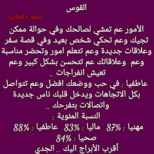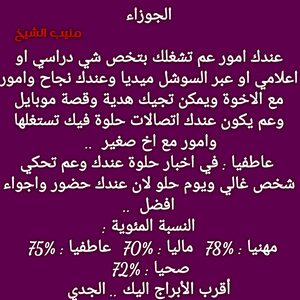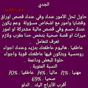 عندك كتير فرص قادمة ومهمة ورح تعوض خسارات الماضي تدريجيا وحاول تغير من وضع علاقاتك وعندك نجاح وتغيير على مستوى سفر وكمان في عندك مكاسب مالية كبيرة واشخاص رح تدخل حياتك وحاول تفكر بالشهرة والاضواء لان لصالحك هالشي وعندك ارتباط بالسنتين القادمين وكل عام وانت بخير ..