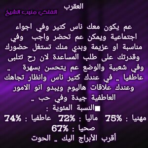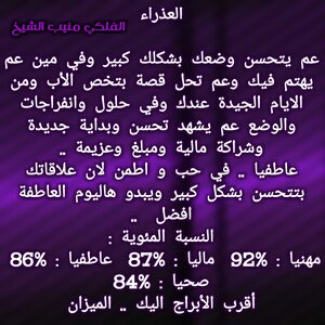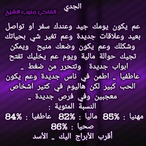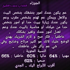لديك تغيير جيد قادم وهناك اشخاص بعيدة تساعدك ويجب أن تفكر في حلول مالية لديك هناك ايضا اشخاص تتقرب منك وفكر في علاج مرض يشغلك وابتعد عن المشاكل وهناك امور عاطفية تدعمك بعلاقات جديدة ويجب أن تترك لنفس الخيار في المناسب وهناك تطورات مهنية ومناصب لديك قادمة وكل عام وانت بخير ..