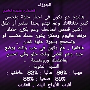 تشهد حياتك امور جديدة تكون عبارة عن مشروع مهم او عمل او حتى سفر مع الوقت تدريجيا ويجب أن تفتح قلبك لفرص عاطفية وامكانية ارتباط وهناك اشخاص بعيدة عنك ومهمة في حياتك سيكون لها دور كبير في مساعدتك وايضا هناك مبالغ مالية جيدة في طريقها اليك قريبا وكل عام وانت بخير ..