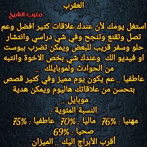 مولود اليوم 28 أكتوبر .. عميق ، عاطفي ، حنون ، ماهر في الطبخ والكثير من الأمور التي تحتاج الدقة ، ذكي ويعرف كيف يصل ، لا يتنازل بسهولة ويختار من حوله بدقة ، قد يبدو غامضا ولايظهر مايشعر به ، يساعد ويدعم من يحب بكل مايستطيع ، نبيل وغيور ويعطي اكثر مما يأخذ ، كما أنه يمتلك جاذبية خاصة وقدرة على الاقناع وعنيد في بعض الأحيان ..