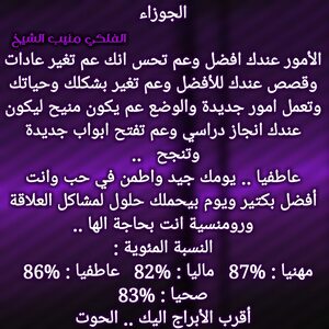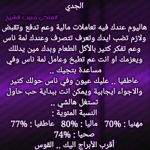 حاول بالفترة القادمة تستغل امور جديدة بحياتك وتخلص من امور واشخاص قديمة وحاول تفتح ابواب جديدة وتغير بحياتك وغالبا عم يكون عندك فرص كبيرة وامكانية سفر وبنفس الوقت في اشخاص عم تدخل حياتك ليكون في حب عم يكبر شوي شوي وكل عام وانت بخير ..
