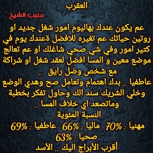 مولود اليوم 4 نوفمبر .. ذكي ، طموح ، قيادي ، متسلط، يعرف قيمة نفسه ، صبور ويتحمل الكثير ، محب لعائلته ويعاني بهم ، يقدم اكثر مما يأخذ من الآخرين ، يمتاز بقدرته على التفكير بعمق والبحث عن كل ماهو جديد ومبدع في عمله ومايريد ، لا يمكن خداعه بسهولة ، في العب يجذب الآخرين له لكنه لا يرتبط بسهولة ، كما أنه لا يعطي فرصا كثيرة لاشخاص في حياته ويضع حدودا للجميع ..
