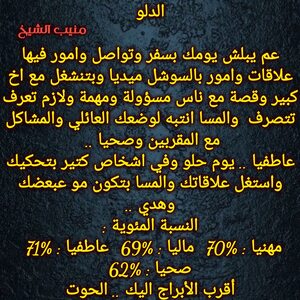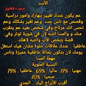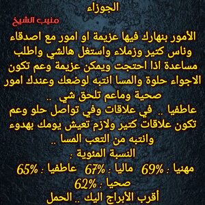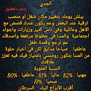 حاول تفتح ابواب جديدة واستغل الفترة القادمة علاقات بتدخل حياتك بإمكانك تغير كتير قصص وتفكر بالسفر وتنجح باكتر من مجال وتكون عم تتحرر من ضغط كبير كان عليك وحاول تفصل بين وضعك العام ووضع عيلتك لتصل للشي يلي بدك وكل عام وانت بخير ..