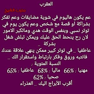 مولود اليوم 5 نوفمبر . لديه احساس عالي وكاريزما وشخصية تحتاج من يفهمها ويقدرها ، يبتعد عن الأماكن المزدحمة ويحب ان يكون في المقدمة دائما ، لديه اصدقاء محدودون لكنه يعرف كيف يكتفي بهم ، يساعد ويدعم من حوله وبكون اقرب لعائلته ويوفر الاهتمام والحماية في علاقته مع الشريك ، ايضا هو شخص ذو طباع حادة ويمتلك شخصية مستقلة لا يمكن أن تتلاعب معها ..