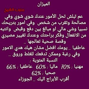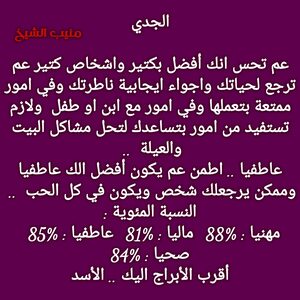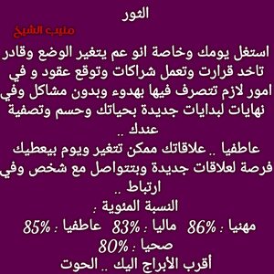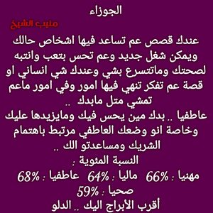لديك امور كثيرة تستطيع أن تقوم بها وعليك أن تساعد نفسك وتبدأ بطريقة مختلفة وهناك اشخاص جدد في حياتك وتغيير كبير قادم وحسم في أمور وعلاقات ويجب أن تنهي كل ماهو مؤذي لك وتجد انك قادر أكثر على النجاح وتصل لمكان مختلف وربما تسافر قريبا وكل عام وانت بخير ..