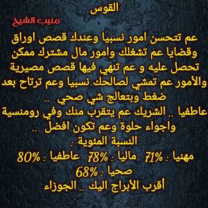 مولود اليوم 9 نوفمبر .. يتمتع بذاكرة قوية جدا وقدرة على استيعاب مختلف الامور ، ذكي ويبحث دائما عن الحقيقة، لا يمكن خداعه ولديه أساليب لتمييز الشخص الجيد من السيء ، يجذب الآخرين له ويمتاز بقدرته على الحوار والسيطرة والتحكم بحياته بشكل جيد ، لايضعف امام المواقف ويكون صبور وكتوم وقوي ، لديه ايضا قدرة كبيرة على التحمل والصبر في أصعب المواقف ..