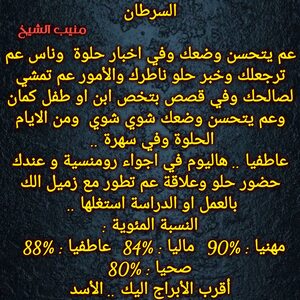 الأمور عندك عم تشهد امور فيها التزامات جديدة وفرص شغل وعم تتغير طبيعة حياتك ويمكن تسافر ويكون في قصة مع شخص مقرب وغالبا في منزل جديد ومكان عمل مختلف وحاول تنهي الشراكات المتعبة عندك وفكر بحلول واستقرار عاطفي وناطرك اخبار حلوة ماليا كمان وكل عام وانت بخير ..