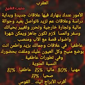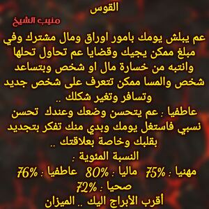 مولود اليوم 10نوفمبر .. صريح ويبحث عن اصدقاء حقيقيين ، لايهمه المظاهر ويعرف قيمة نفسه جيدا ، عنده كاريزما ساحرة وتجده في المواقف الصعبة ، يقدم الكثير للاخرين ويتحمل على حساب غيره ، يكون نجمه ساطع ويعرف كيف يكون علاقات حقيقية ، لايحب الاشخاص المرواوغين وعنده قدرة على نصيحة غيره ، ويستطيع كشف حقيقة الناس من حوله ..