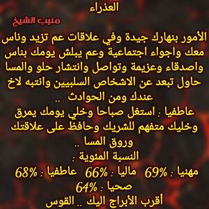 فكر بالفترة الجاية بتغيير وامور سفر ونجاحات قادمة الك وبنفس الوقت عم تتعرف على اشخاص بتدعمك مع الوقت وفي امور شراكات رح تنهيها وتبلش شراكات جديدة وفرص الارتباط رح تكون بالسنتين القادمين وعندك اجواء حلوة عاطفية ومهنية والاخبار الحلوة قادمة وكل عام وانت بخير ..