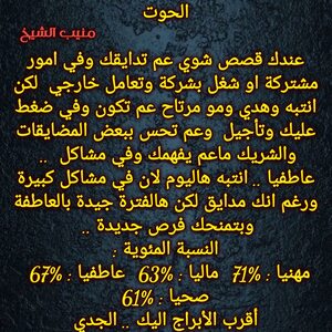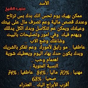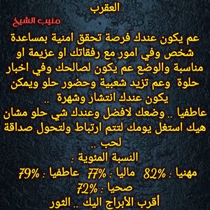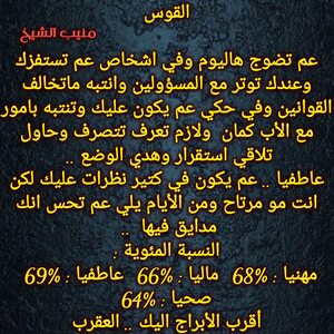 مولود اليوم 13نوفمبر .. لديه قوية غير طبيعية ويستطيع ان يكون مؤثر بمن حوله ، ذكي ويعرف نوايا الاشخاص ، اجتماعي مع الناس التي تفهمه ويحبها ولايؤمن للغرباء بسرعة ، متقلب المزاج وحساس من الداخل رغم انه يبدو صلبا ، حنون كثيرا وخاصة على عائلته ، يمتلك ثقة عالية وحضور مميز وكاريزما تجذب اليه الكثيرين ، كما أنه يعتمد على نفسه في اي عمل أكثر من اعتماده على غيره ..