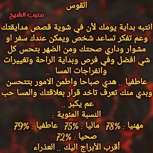 مولود اليوم 20 نوفمبر .. ذكي وعميق في أفكاره ، غامض احيانا واجتماعي مع الذين يحبهم ، يعرف جيدا كيف يسحر بحضوره الجميع ، يمتلك شخصية مزاجية احيانا ، ذو طباع حادة ولايمكن ان يساير اذا لم يكن مقتنع ، عنده دائما صفات تجعله مميز ، يحب بقلبه ويتحكم بعقله ، يستطيع أن يخفي مشاعره عندما يريد ، كما أنه شخص ذو كرامة ولا يمكن أن يتنازل لاحد ..