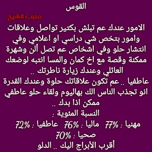 مولود اليوم 27 نوفمبر .. لديه دائما حب لان يكون ناجح ، يحلم كثيرا وغالبا مايحقق طموحاته ، يحب أن يكون مختلفا ويعيش حياته بطريقته الخاصة ، يحب السفر والتجوال والناس الجديدة والمثقفة ، يتعلم من أصغر الأشياء في حياته وقد يبدو مغرورا لكن إذا تقربت منه تحده بسيطا جدا ومحبا لديه قلب طفل صغير ، يحب أن يكون دائما في تغييرات تجعله يبحث عن اشخاص جدد ..