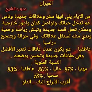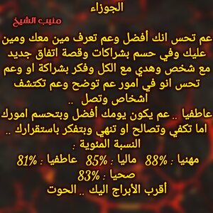 حاول بالفترة القادمة انك تستفيد من فرص مالية وعندك اخبار ايجابية وعم تصالح اشخاص وكمان عندك قصص عم تتحرك لصالحك وفي اشخاص عم ترجع تتقرب شوي شوي وممكن يجيك تغيير مفاجئ وتبلش مع شخص وحاول تعرف تختار الانسب الك وفي فرص سفر وكل عام وانت بخير ..