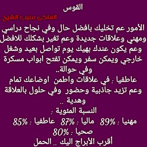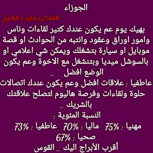 حاول تفكر بحياتك بطريقة صح وعندك استقرار نسبي بعد سنوات كان فيها ضياع وامور عم تخليك أقرب من عيلتك وفي اخبار حلوة تحسن بامورك المالية وعندك فرص لتنجح وتصل وتتعلم امور جديدة ولازم تتقرب ترجع من ناس حولك ولي اجواء ايجابية وحب وكل عام وانت بخير ..