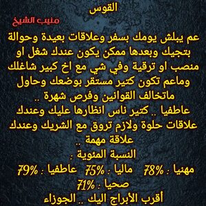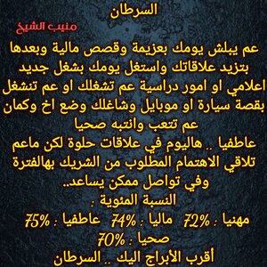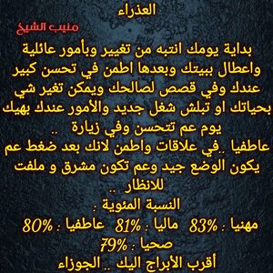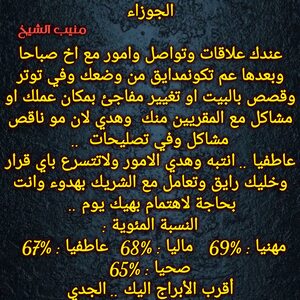 تدخل مرحلة جديدة تكون فيها امام اختبارات على مستوى وتستطيع الوصول والنجاح ويكون هناك نهايات لامور اتعتبتك خاصة في علاقاتك وايضا هناك أمور تتغير وفرص كبيرة لسفر قريبا وهناك اشخاص تتقرب منك وعمل اعلامي وانتشار وشهرة عند البعض وكل عام وانت بخير ..