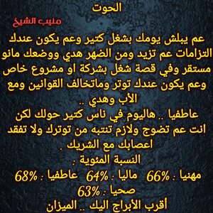 مولود اليوم 10ديسمبر .. لايحب المقارنات ، صريح صادق ولايحب الاشخاص المصطنعين ، عفوي في تعامله ويكره اللف والدوران والكذب ايضا ، لديه الكاريزما والحضور ونجمه قوي بين الجميع ، يحب أن يخالك الاشخاص الايجابيين ويكره الحزن ويستطيع ان يتجاوز المشاكل جميعها بالضحك وبطاقته الكبيرة ، يحب أن يكون في مكان الضوء ويكره الظلمة ..