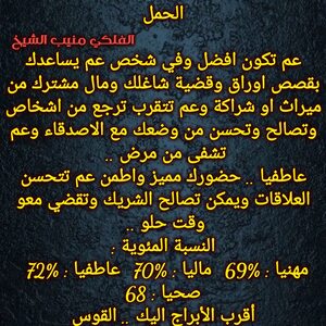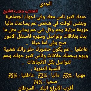 لازم تعرف تتحكم بحياتك لان مرحلة مهمة وعندك قرارات مع اشخاص اما تكفي لو تنهي وتعرف مين لازم تستقر معه وبنفس الوقت عندك تأسيس لعمل المستقبل وبداية اعتماد علل نفسك وفي تحسن صحي وعاطفي واشخاص رح تبلش تعرف قيمتك واخبار حلوة تدريجيا وكل عام وانت بخير ..