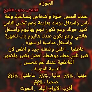 امور كتير عم تتغير وحياتك الفترة القادمة رح يكون فيها قصص بتشغلك مالية وعاطفية وعندك فرصة لترجع شخص لحياتك وتبلش شغل جديد بحسن من وضعك المهني وبنفس الوقت في امور عائلية عندك ولازم تلاقي مكان مناسب وافضل الك وفي اجواء بتدعمك وتواصل كمان وكل عام وانت بخير ..