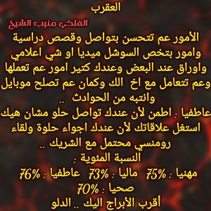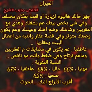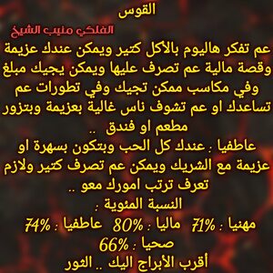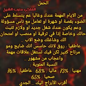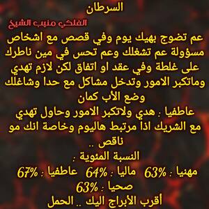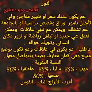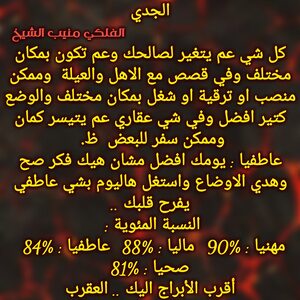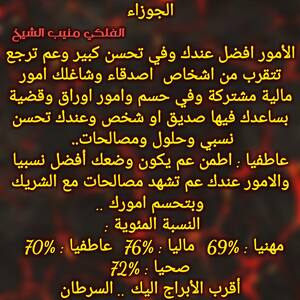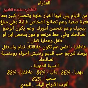 انت بمرحلة بدك فيها تعرف مين معك ومين عليك وفي خيارات افضل واخبار بتدعمك وكمان عم تلاقي وضعك العائلي افضل عم يكون وفي اخبار حلوة مالية وقصة عم تخلص فيها من ذكريات صعبة ولازم تستفيد من الماضي وتبلش من جديد وتبلش مشروع خاص فيك وكل عام وانت بخير .