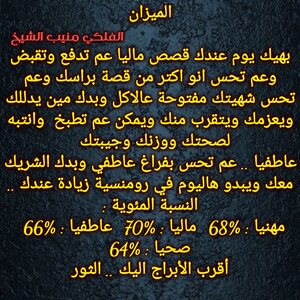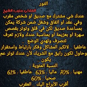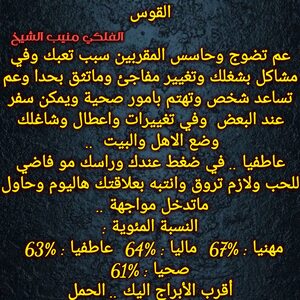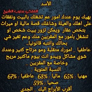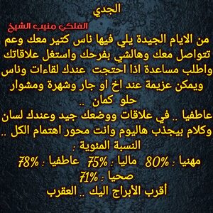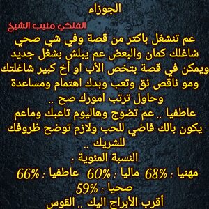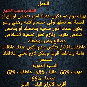 الفرص عم تزيد عندك وخاصة بامور مالية وعاطفية عم تتحرك لصالحك وحاول تعرف تستفيد من قصص شاغلتك وعندك خبر حلو وعم تتيسر قصة ناطرها وفي اخبار جديدة علاقاتك عم تتحسن وممكن السنوات القادمة تحمل الك تغيير مفاجئ وبيت مختلف وحتى شكلك رح يتغير وكل عام وانت بخير ..