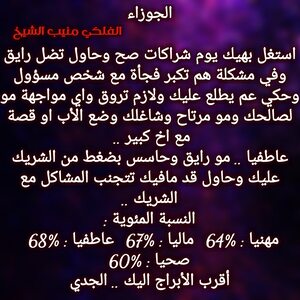 تعتبر الفترة القادمة بحياتك فترة فيها كل الحظ وغالبا عم تفرح بأخبار حلوة واشخاص عم ترجع وفرص ارتباط ومكاسب وحظوظ عم تزيد عندك فاستغلها كمان في قصة بتخص ابن او طفل وامور عم تتغير بتخص سفر خلال السنوات القادمة والوضع المالي جيد وفي مكاسب هالسنة وكل عام وانت بخير ..