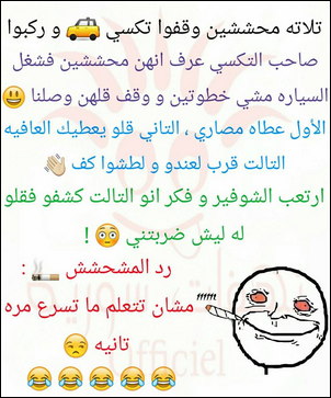 ويقول محشش اليوم فقت من النوم قررت اغير حياتي , فسأله احدهم : وماذا غيرت ؟ فقال غيرت رأي ورجعت نمت ههه