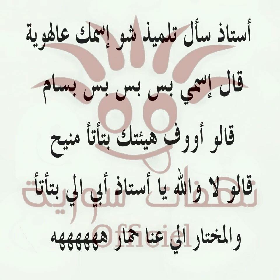 الابن: بابا انا عم دخن !! الاب: لك شوفو ع هل وقاحة وشقد صرلك عم تدخن ولا ابن الكلب ؟؟ الابن: من وقت ما شفتك بالسوق مع سكرتيرتك وتاكلو شاورما الاب: اي معلش بابي اصلن انا كنت اصغر منك وبدخن ههههههه