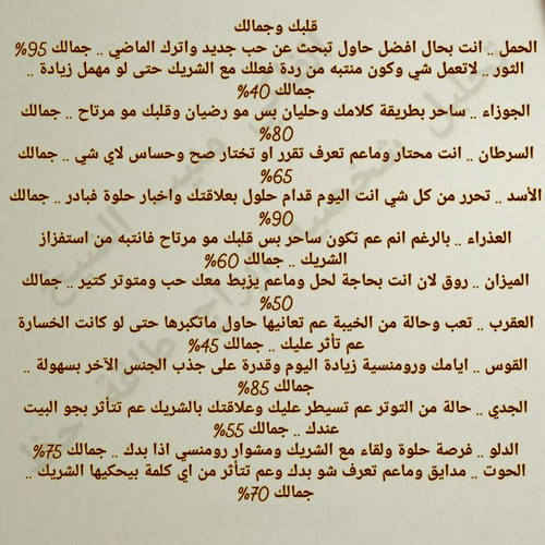 ﺃحِبُّكِ ﻋَﺸﺮﺍً ؛ ﺛَﻤﺎﻥٍ لكِ ، ﻭَ ﻭﺍﺣِﺪةٌ لِضحكَتكِ ، ﻭﺍﻷُﺧﺮَﻯ ﻟِﺼَﻮتُكِ ،ﻭﺃﻣّﺎ عَينَيكِ ، ﻓَﻌﺠِﺰَ ﺍﻟﻜﻼﻡُ ﻋَﻦِ ﺍﻟﻜَﻼﻡ