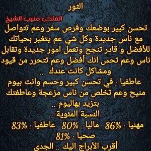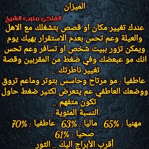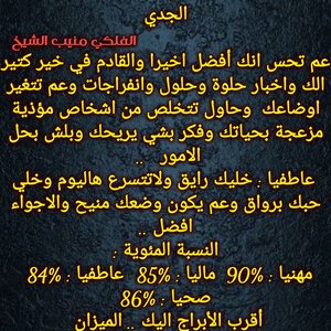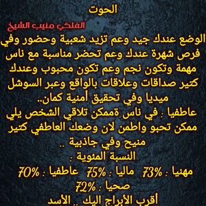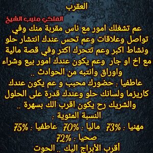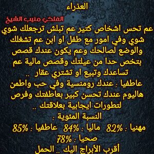 عم تبلش حياتك تكون افضل وعندك قصص وامور عائلية بنهايتها وفي فرص حلوة لتشارك اشخاص وعندك مبالغ واموال ممكن تجيك ولازم تعرف تتصرف وتستفيد من وضعك المالي وفي مساعدة رح تجيك وشخص عم يرجع وكمان بنفس الوقت عندك اجواء ايجابية الفترة الجاية وكل عام وانت بخير ..