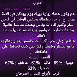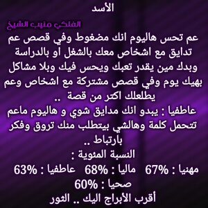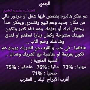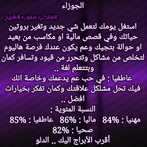 استغل فرصك وفكر بافضل طريقة لتنجح وعندك شريك بيدخل حياتك وبغير فيها الكتير وبكون إضافة حلوة وبتكملك ولازم تعرف تتصرف وفي فرص عاطفية قادمة واجواء حلوة وبنفس الوقت ممكن تسافر تدريجيا وعندك عارض صحي رح تخلص منو قريبا وكل عام وانت بخير ..