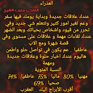 تستطيع أن تبدأ امور جديد وعمل مشترك يمنحك الاستقرار المهني ويعطيك أفضلية كبيرة وخاصة على صعيد للمال تباعا وهناك اشخاص تتقرب منك وفرص للنجاح لكن يجب أن تنتبه بامور عائلية وتبحث عم الاستقرار في مكان جديد وهناك فرص سفر وصديق يدعمك وكل عام وانت بخير ..