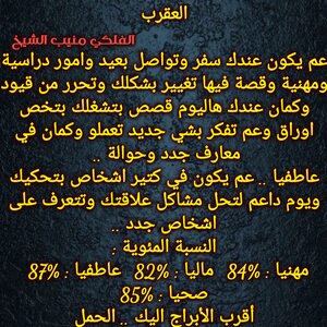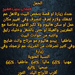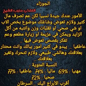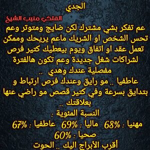 من الفترات يلي عندك فيها افكار كتير لكن بدك الخطوة الأولى وحاول تلاقي الشخص يلي ممكن يكون معك ورتب امورك المالية وعندك حظ رح يزيد تباعا واخبار حلوة على صعيد العاطفة وفرص الارتباط عندك وممكن تغير منزل شوي شوي او يكون عندك ترتيب جديد لحياتك وكل عام وانت بخير ..