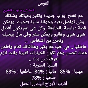 انت بمرحلة من التغييرات المهمة في حياتك ويمكن لازم تهتم اكتر بنفسك وتعرف تستغل ظروفك وفي اخبار حلوة بتخص وضعك المالي ولازم تعرف تتصرف وعندك اكتر من شخص حولك وفي فرصة ارتباط ولازم تعرف تقرر بخصوص وضعك الدراسي وخاصة انك عم تحس بعدم الراحة وكل عام وانت بخير ..