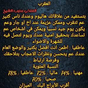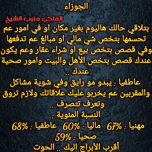 امور كتير عم تتغير بحياتك وعم تحس بنوع من الراحة ولازم تعمل تصفية لناس معك وتدخل ناس بتستاهل حياتك وفي شغل او قصص مهمة بتدعمك ماليا وكمان عم تتحسن امورك الصحية بعد تعب وفي اخبار حلوة عاطفيا وفرص ممكنة للارتباط بحياتك وكل عام وانت بخير ..