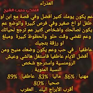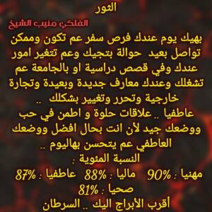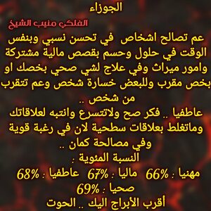 عم تكون افضل بكتير وفي خبر حلو وامور عم تساعدك وعم تستفيد من قصص كانت تاعبتك وفي تحسن صحي وامورك المالية عم تكون افضل كمان وحاول تغير ترتيب حياتك وفي افكار جديدة وعم تحس انك اكتر طاقة وكمان في شخص عم يدعمك بعيد وفي تفكير بالسفر وكل عام وانت بخير ..